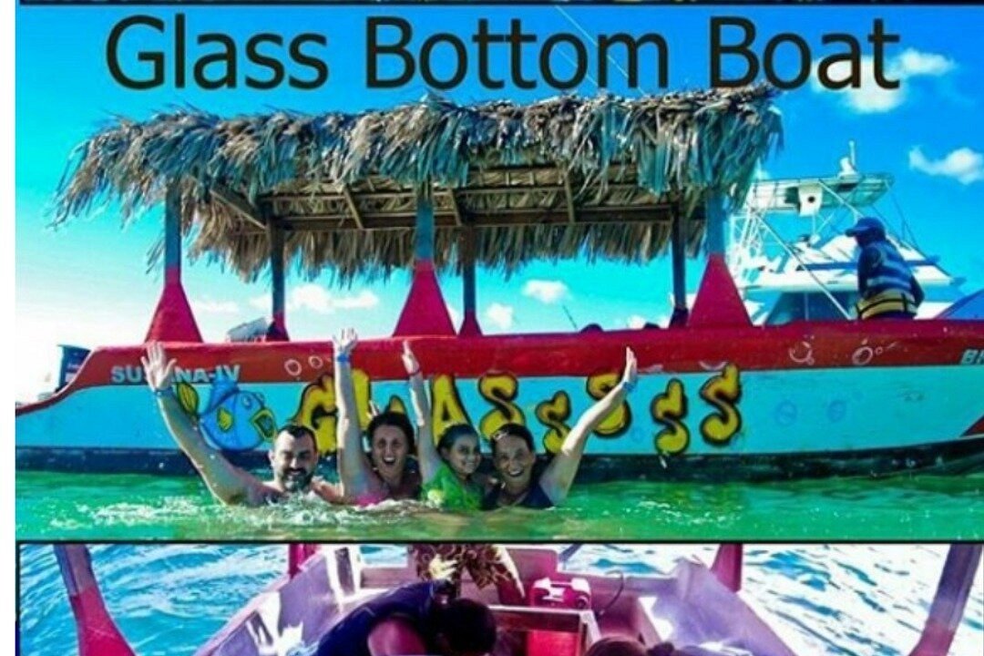 Ideal for families with young children: private glass-bottom boat ride to admire marine life without getting wet. Includes snacks, drinks, and a specialized guide. Premium group experience: catamaran with lounge areas, glass floor for viewing under the boat, onboard service, and snorkeling stops. Excellent for celebrations and private groups.